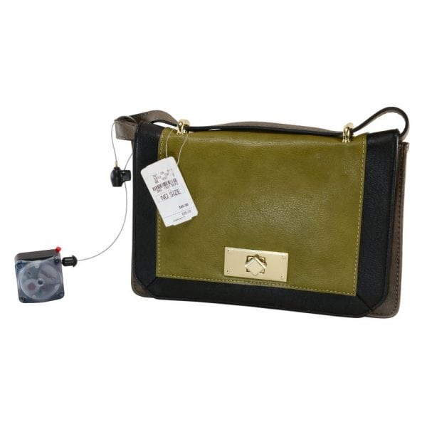A retracting alarm in a small package that alarms when the cable is cut or the retractor is moved.